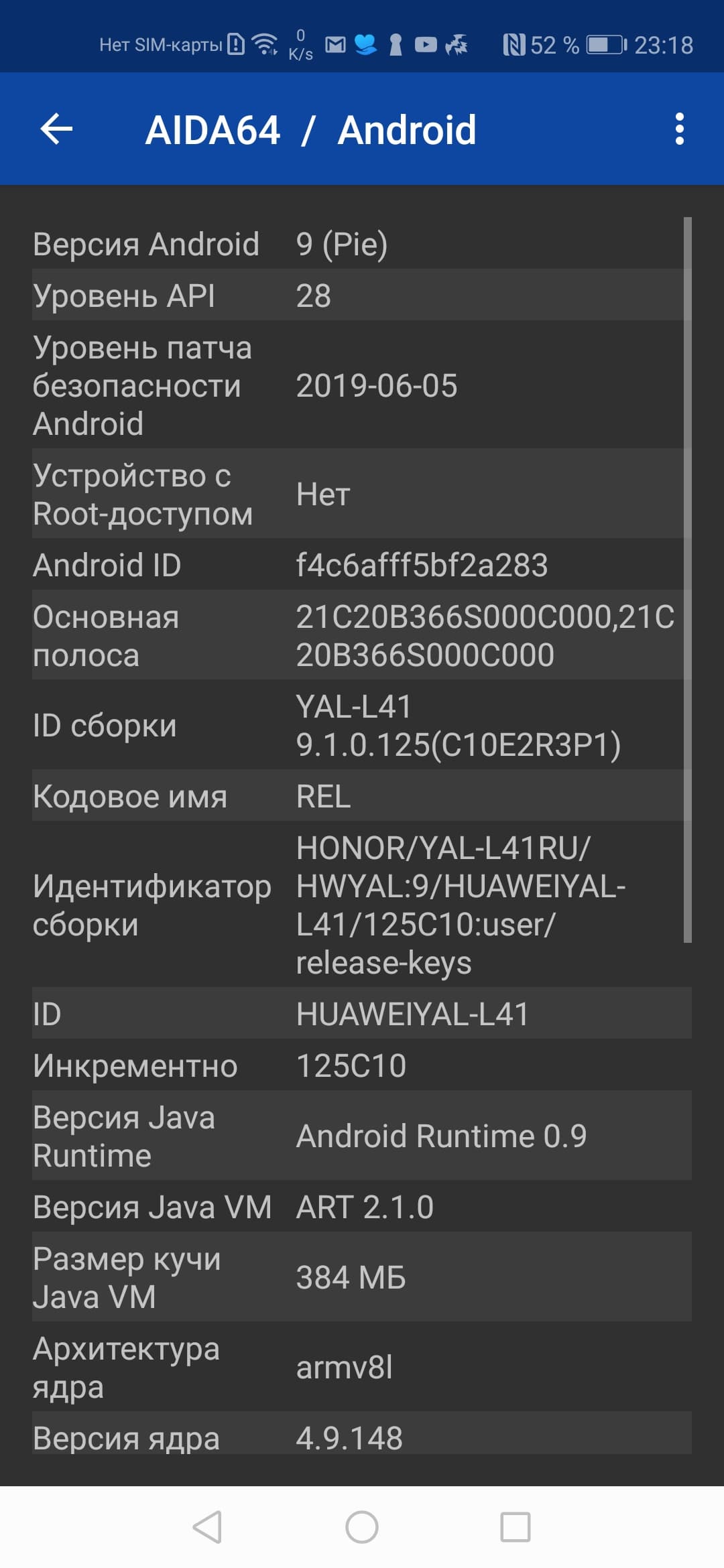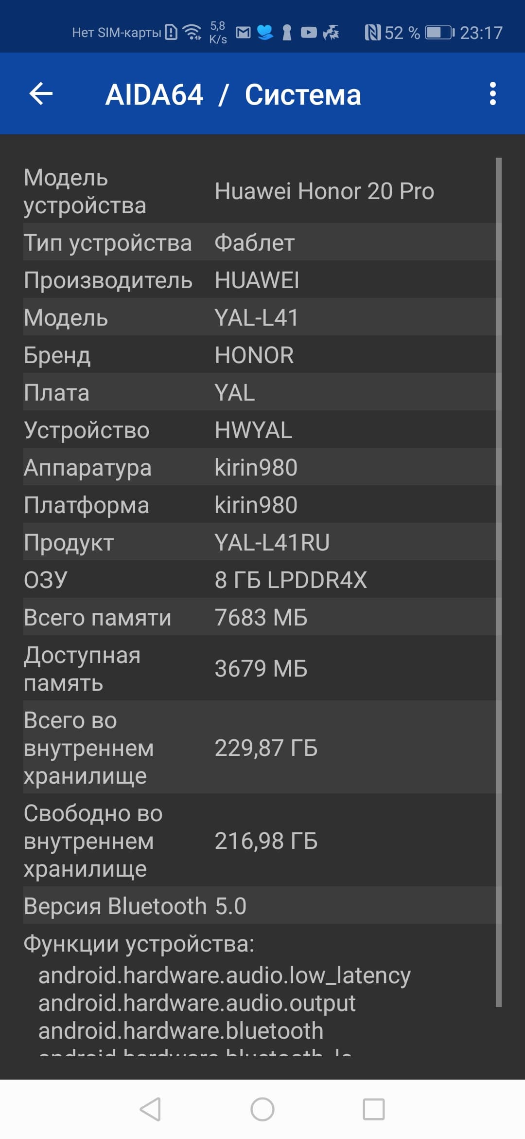 Основные характеристики Honor 20 Pro (модель YAL-L41)