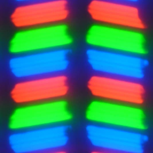 В данном смартфоне используется матрица типа IPS. Микрофотографии демонстрируют типичную для IPS структуру субпикселей: