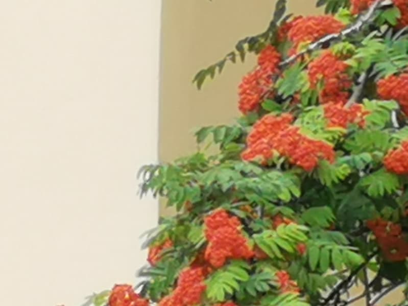 Можно отметить приятно удививший нас «гибридный» зум 5× — похоже, программисты все-таки нащупали алгоритм обработки, при котором цифровое увеличение удачно подчеркивает то, что оно в принципе в состоянии подчеркнуть (понятно, что настоящим деталям при этом неоткуда взяться). В целом «телевик» выдает вполне достойную картинку, не хуже основного модуля, так что удаленные детали с его помощью разглядывать — одно удовольствие.