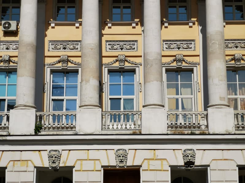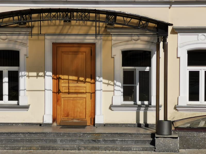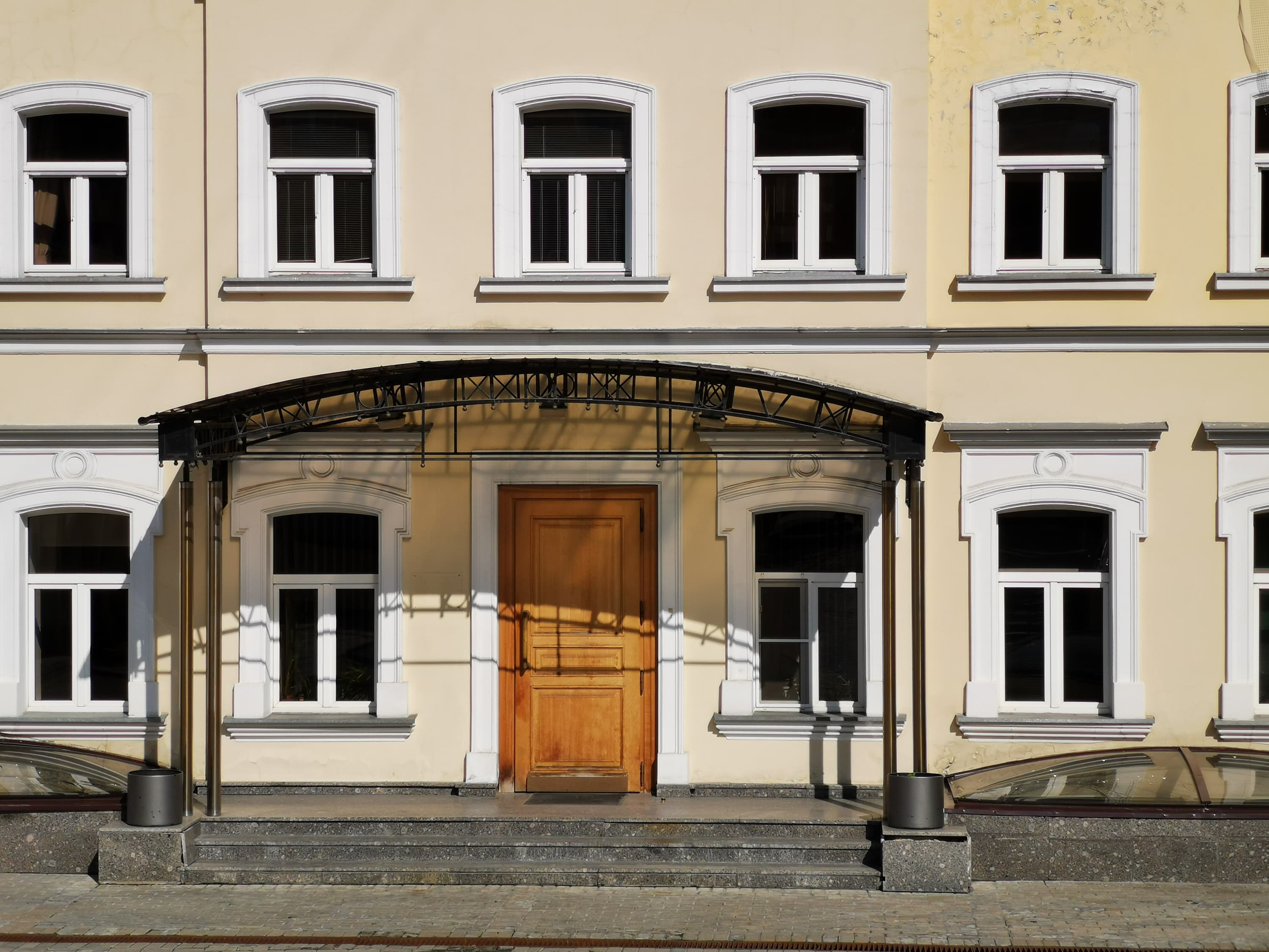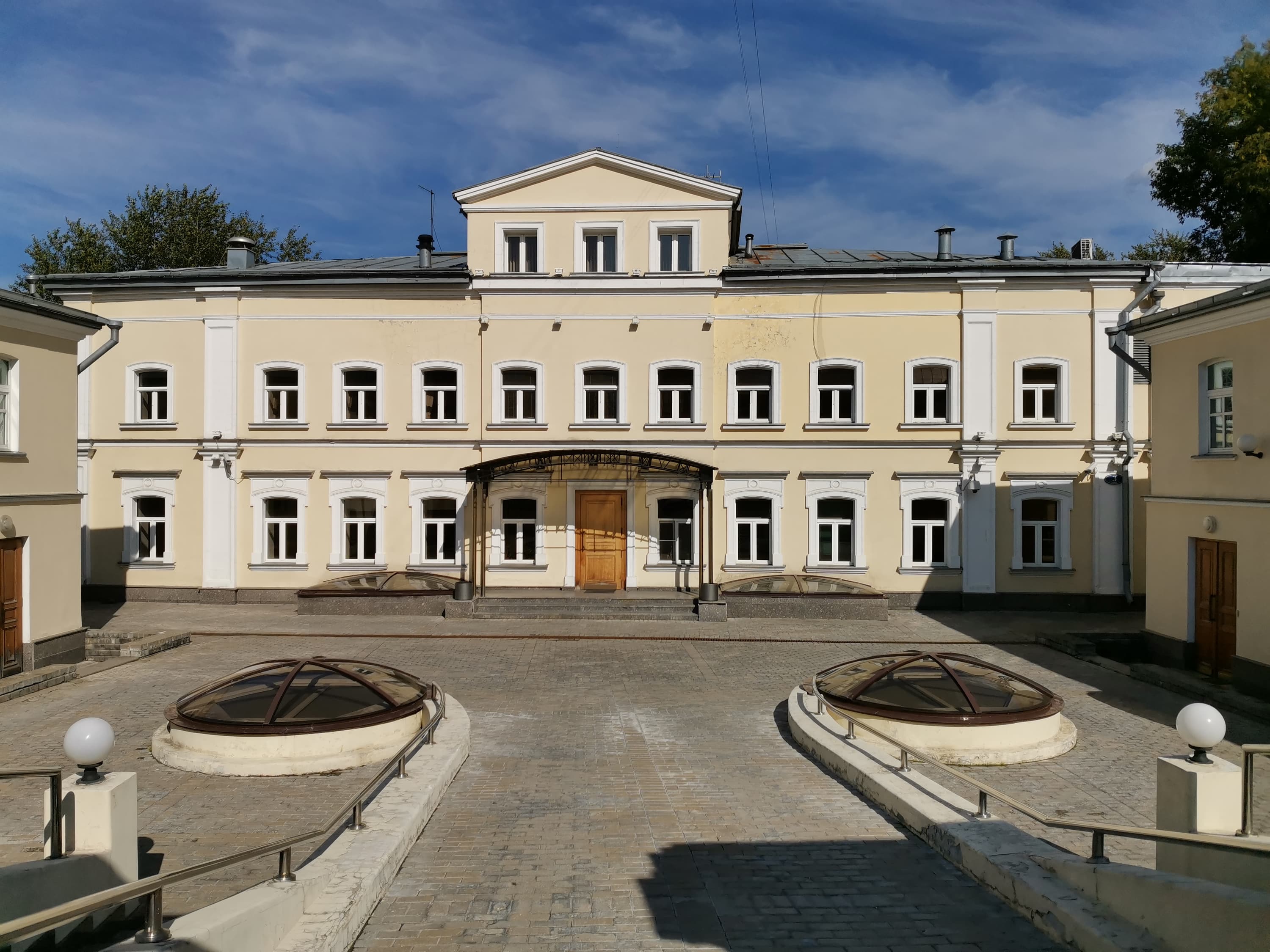 Ещё более полезным такой набор возможностей оказывается в том случае, когда нужно сфотографировать что-то, к чему подойти невозможно. Вот, например, симпатичный домик 1877 года постройки в центре Москвы, безжалостно растерзанный изнутри офисными помещениями. Просто так подойти к нему нельзя – мешает высокий забор. Но зато с помощью широкоугольного объектива Honor 20 Pro можно сфотографировать его целиком с захватом соседних корпусов. С помощью обычной камеры берём в фокус уже только основное здание. А с помощью трёхкратного и пятикратного зума можно показать детали фасада или отдельно фрагмент крыльца.