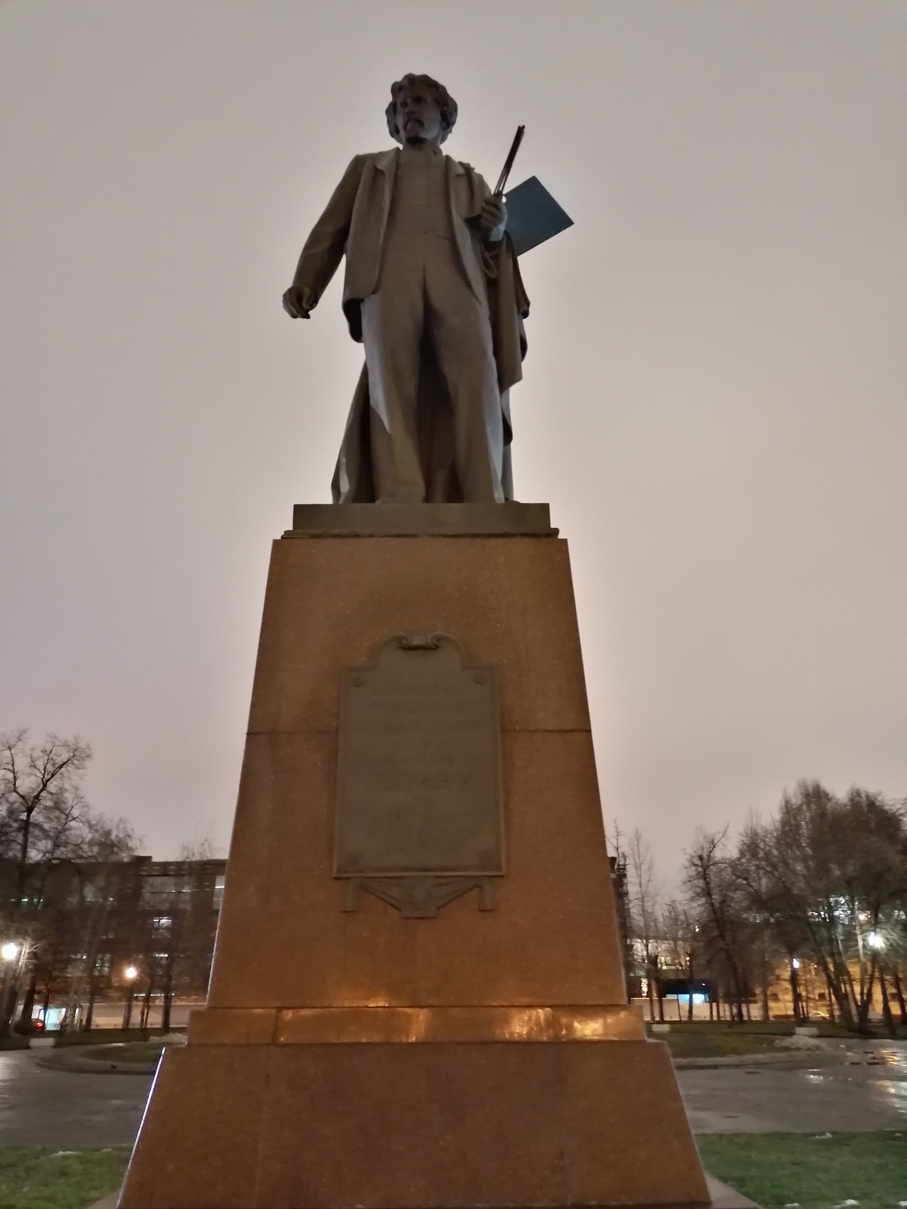 Снимая памятник, мы проверили ещё и работу режима HDR. С ним фотография получилась намного светлее, чем в прочих, но детали смазались. Ночной режим дал самый резкий кадр, но сам памятник вышел тёмным.