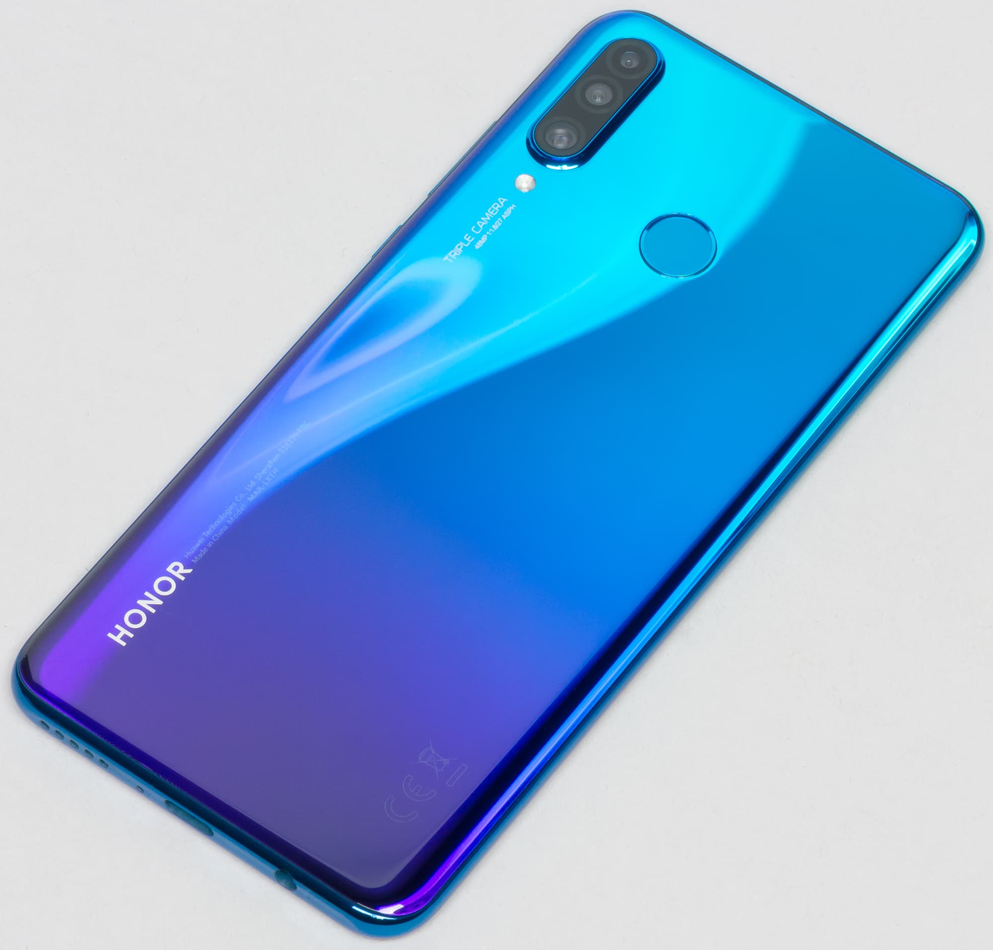Honor 20S предлагается в России в трех цветах: полночный черный, ледяной белый и градиентный сине-фиолетовый. Защиты от пыли и влаги корпус смартфона не получил.