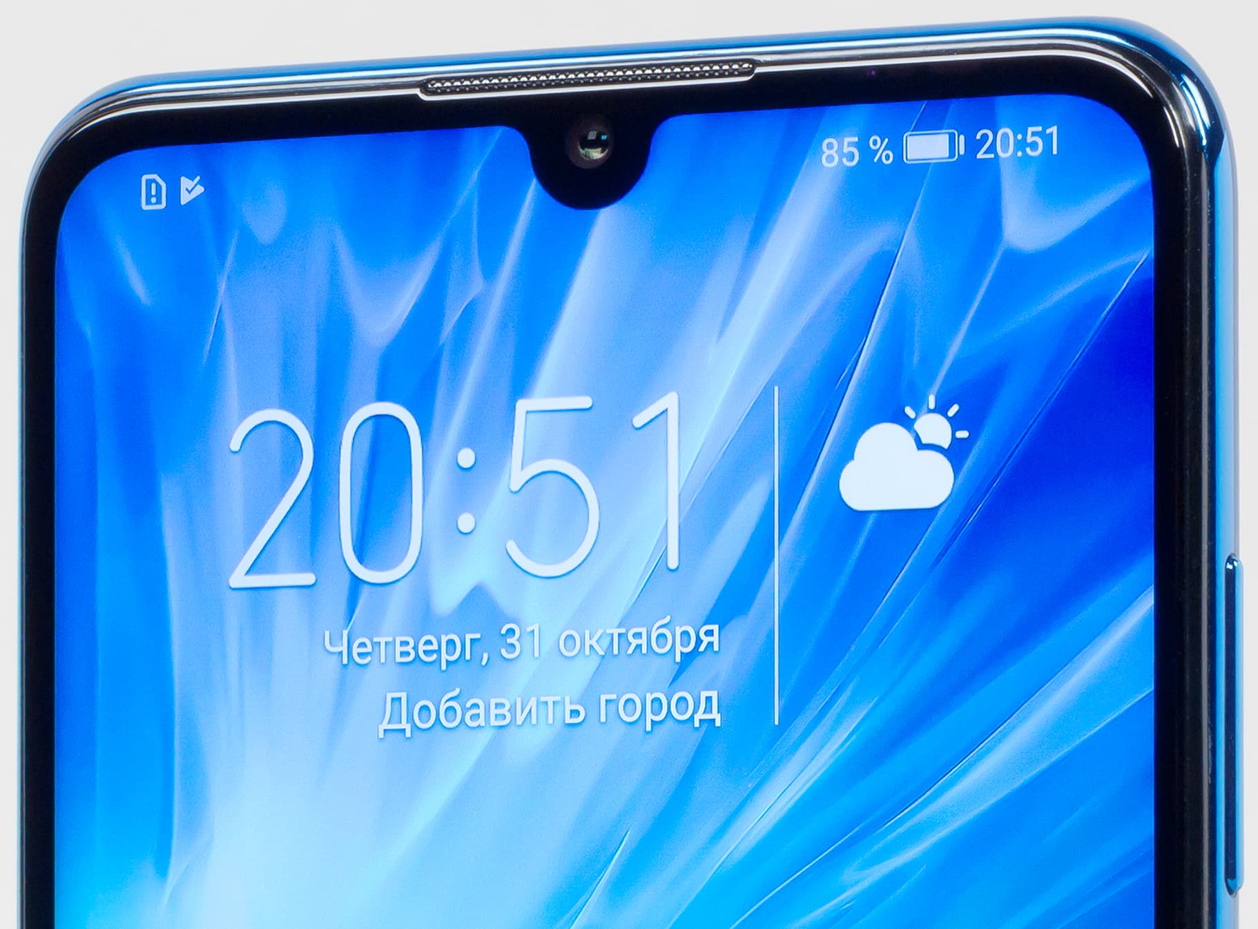 Фронтальная камера размещена здесь в совсем небольшом каплевидном вырезе, который отнимает у экрана очень мало места. Но, конечно, в такой маленький вырез не влезли ни дополнительный модуль, ни вспышка.