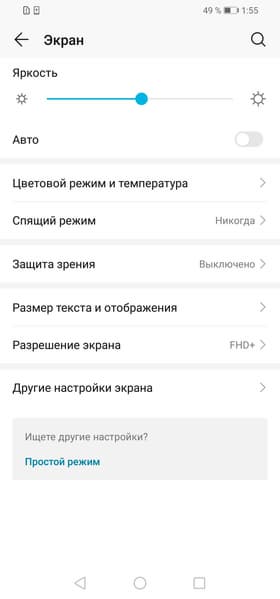 Присутствует модная настройка, позволяющая снизить интенсивность синей компоненты.