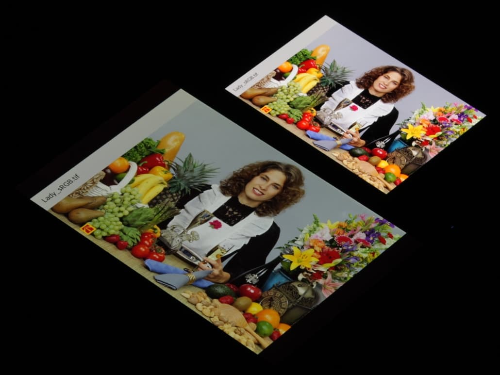 Отметим, что на экранах с широким цветовым охватом (без соответствующей коррекции) цвета́ обычных изображений, оптимизированных для устройств sRGB, выглядят неестественно насыщенными. Отсюда и рекомендация: в большинстве случаев смотреть кино, фотографии и все естественное лучше при выборе профиля Обычные, и только если фотография или видео имеют охват DCI-P3, принятый в цифровом кинематографе и «родной» для топовых устройств Apple, имеет смысл переключить профиль на Яркие.