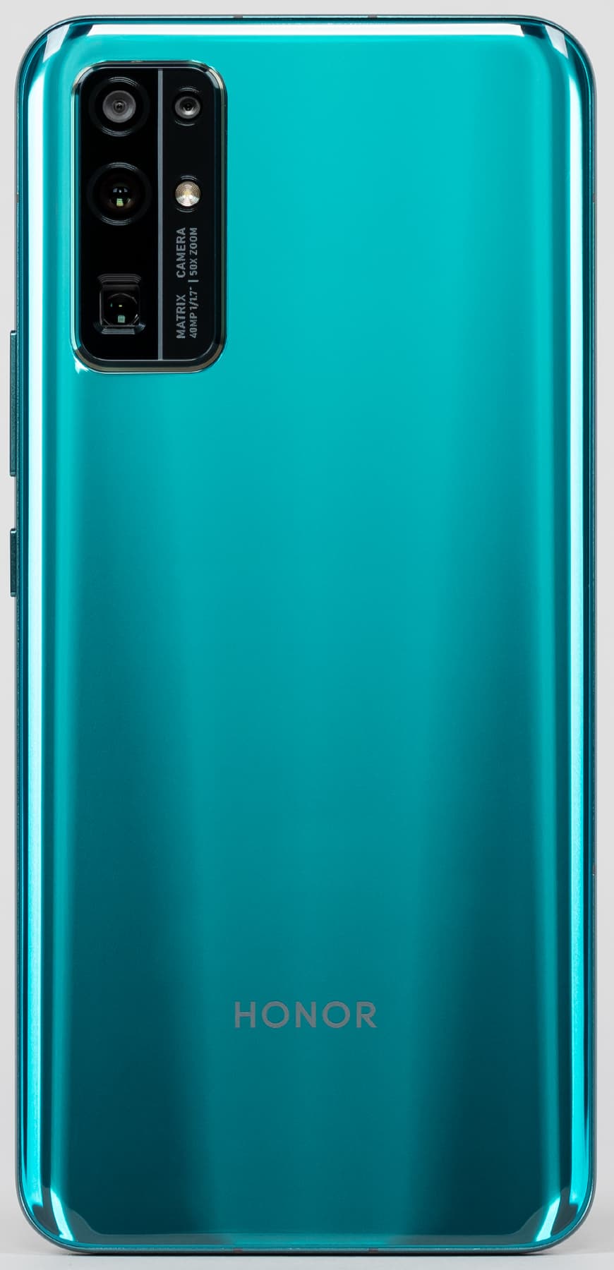 Смартфон выпускается в нескольких вариантах цветового оформления, но в России официально доступны три: «полночный черный», «изумрудно-зеленый» и «титановый серебристый» (с большим логотипом Honor на задней панели). Полноценной защиты от пыли и влаги корпус смартфона не получил.