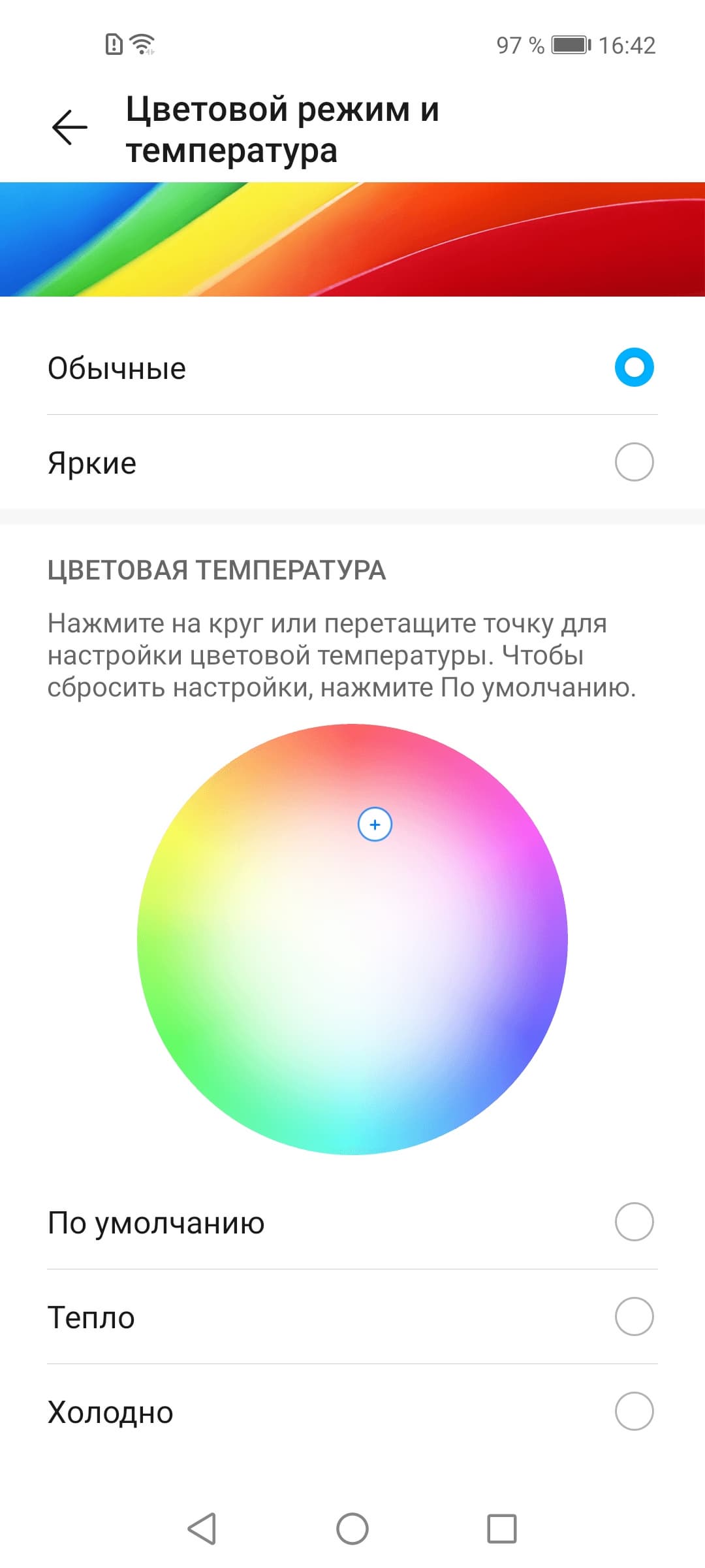 Фотография выше получена после выбора профиля Обычные в настройках экрана, всего их два: