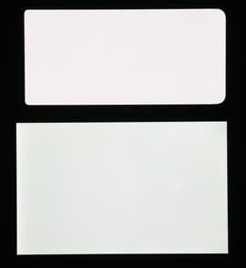 Экран характеризуется великолепными углами обзора. Правда, белый цвет при отклонении даже на небольшие углы приобретает едва заметный сине-зеленый или розоватый оттенок. Зато черный цвет остается просто черным под любыми углами. Он настолько черный, что параметр контрастности в данном случае неприменим. Для сравнения приведем фотографии, на которых на экраны Honor 30 (профиль Обычные [цвета]) и второго участника сравнения выведены одинаковые изображения, при этом яркость экранов изначально установлена примерно на 200 кд/м², а цветовой баланс на фотоаппарате принудительно переключен на 6500 К.