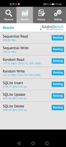 Результаты теста AndroBench на скорость работы с памятью:
