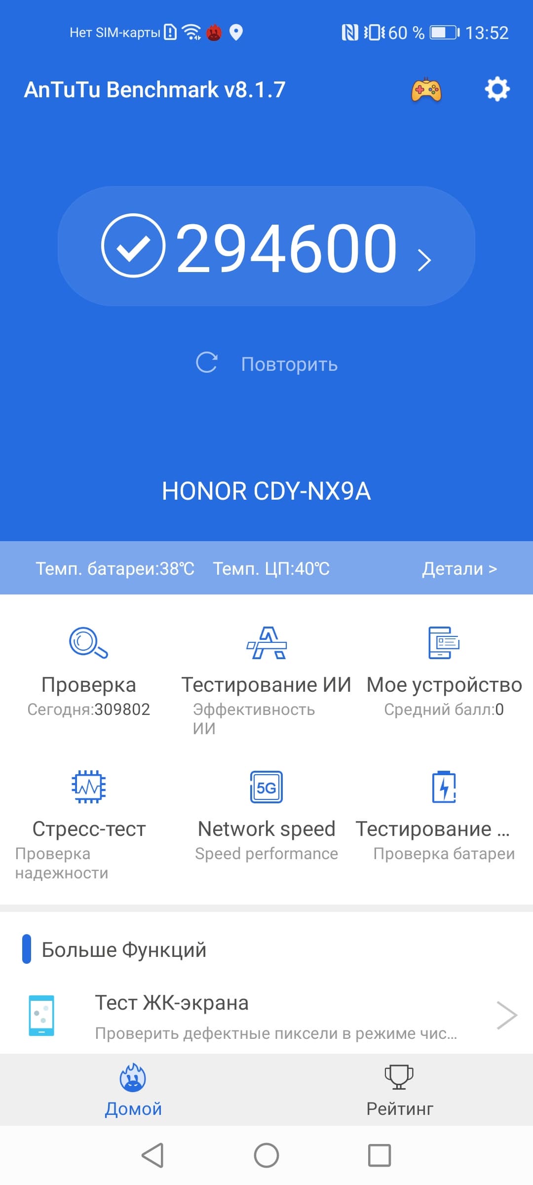 SoC Kirin 820 5G только что вышла, и это одна из лучших «субфлагманских» мобильных платформ. В синтетических тестах она показывает результаты примерно на уровне Qualcomm Snapdragon 765, в реальной эксплуатации с любой задачей и с требовательными играми, включая Injustice 2 и PUBG, смартфон справляется без малейших заминок и притормаживаний.