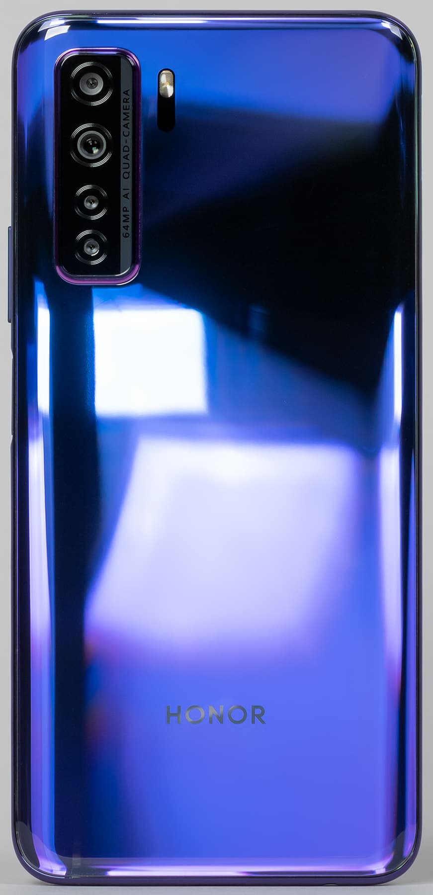 Внешний вид у Honor 30S привлекательный, дизайн привычный и хорошо знакомый. Органичное сочетание сдержанных форм, плавных обводов, блестящих стеклянных панелей и матовой боковой рамки обеспечивает смартфону дорогой и стильный вид.