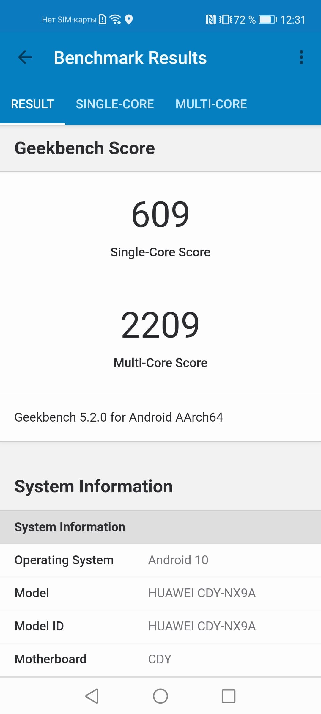 | GeekBench 5 (больше — лучше) | 609/2209 | 543/1743 | 613/1821 | 602/1361 |