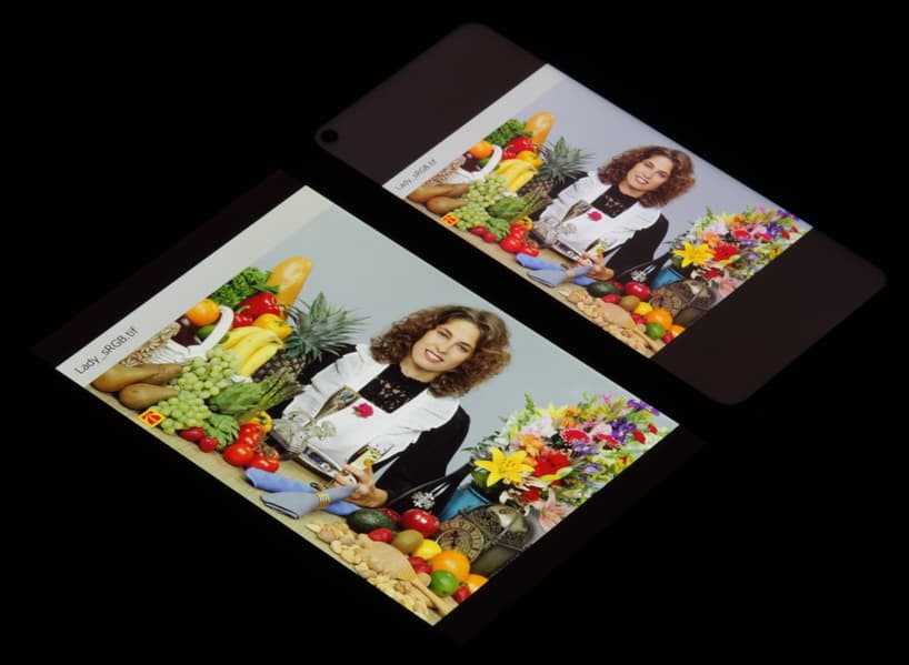 Спектры компонент достаточно хорошо разделены, что и обуславливает широкий цветовой охват. Для потребительского устройства широкий цветовой охват является недостатком, поскольку в итоге цвета изображений — рисунков, фотографий и фильмов, — ориентированных на пространство sRGB (а таких подавляющее большинство), имеют неестественную насыщенность. Особенно это заметно на узнаваемых оттенках, например на оттенках кожи. Результат приведен на фотографиях выше.