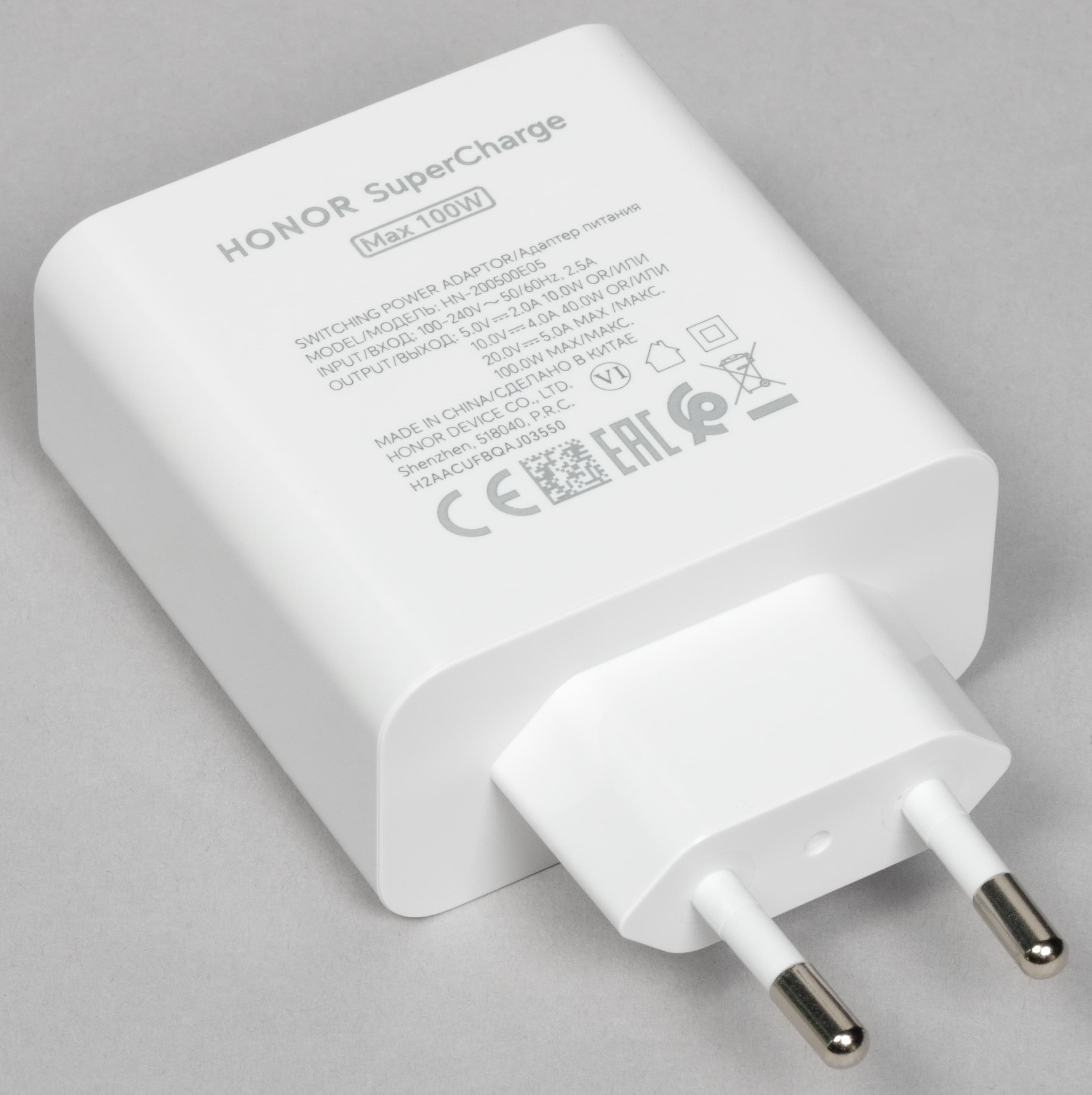 От комплектного зарядного устройства смартфон полностью заряжается не дольше 45 минут. Поддерживается и беспроводная зарядка Honor SuperCharge мощностью 50 Вт. Также смартфон умеет осуществлять обратную (реверсивную) зарядку других устройств, как проводную, так и беспроводную.