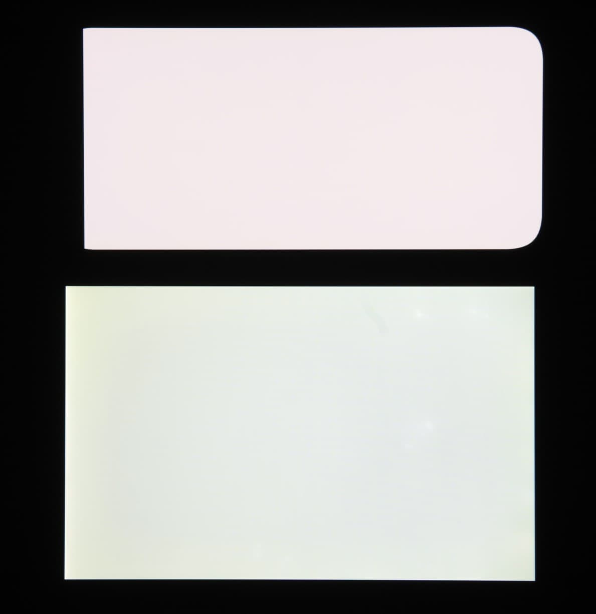 Цветопередача хорошая, цвета в меру насыщенные, цветовой баланс у экранов немного различается. Напомним, что фотография не может служить надежным источником сведений о качестве цветопередачи и приводится только для условной наглядной иллюстрации. В частности, выраженный красноватый оттенок белого и серого полей, присутствующий на фотографиях экрана смартфона, при перпендикулярном взгляде визуально отсутствует, что подтверждается аппаратными тестами с помощью спектрофотометра. Причина в том, что спектральная чувствительность матрицы фотоаппарата неточно совпадает с этой характеристикой человеческого зрения.