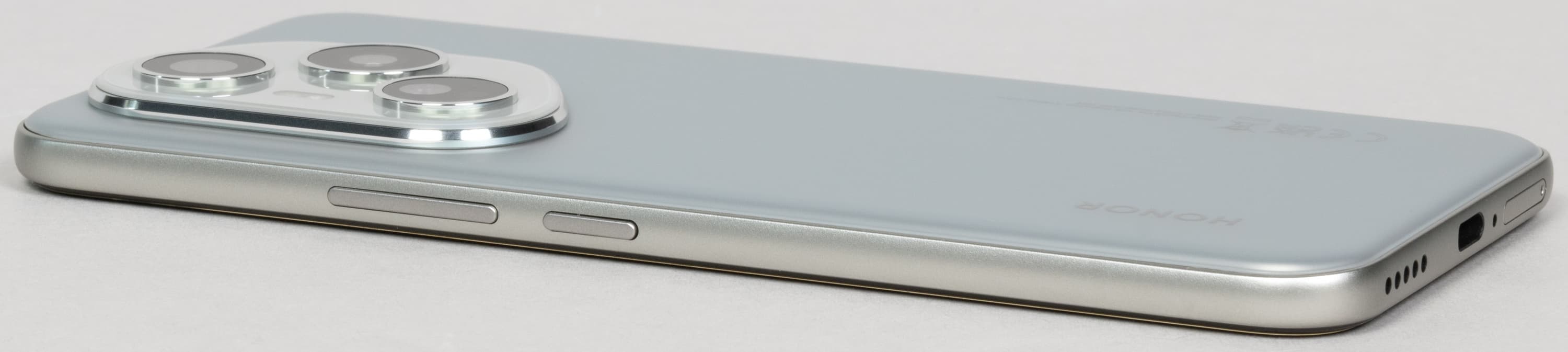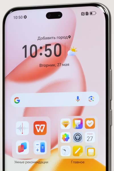 Смартфон Honor 400 Pro выполнен в хорошо знакомом обтекаемом дизайне корпуса, где нашлось место и закругленным в профиль бокам, и загнутым стеклам. Правда, боковая рамка заужена не совсем уж до минимума, а стекло дисплея загнуто по бокам сравнительно несильно. За счет обтекаемых форм аппарат комфортно удерживается в руке.