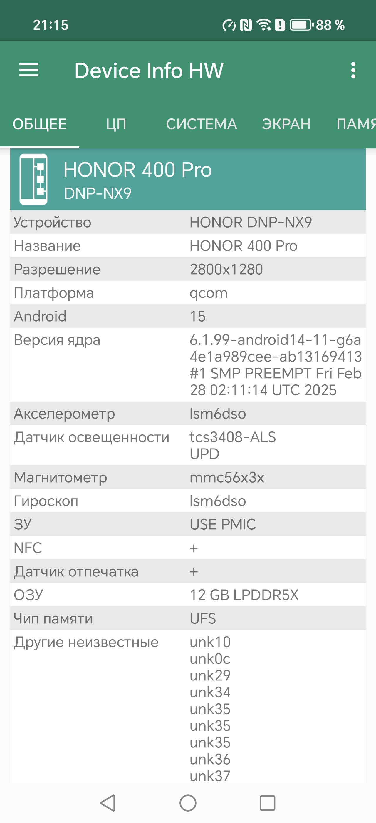 Основные характеристики Honor 400 Pro (модель DNP-NX9)