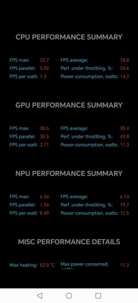 Тест на снижение производительности при нагреве мы проводим с помощью программы Burnout Benchmark, которая позволяет нагружать CPU, GPU и NPU: