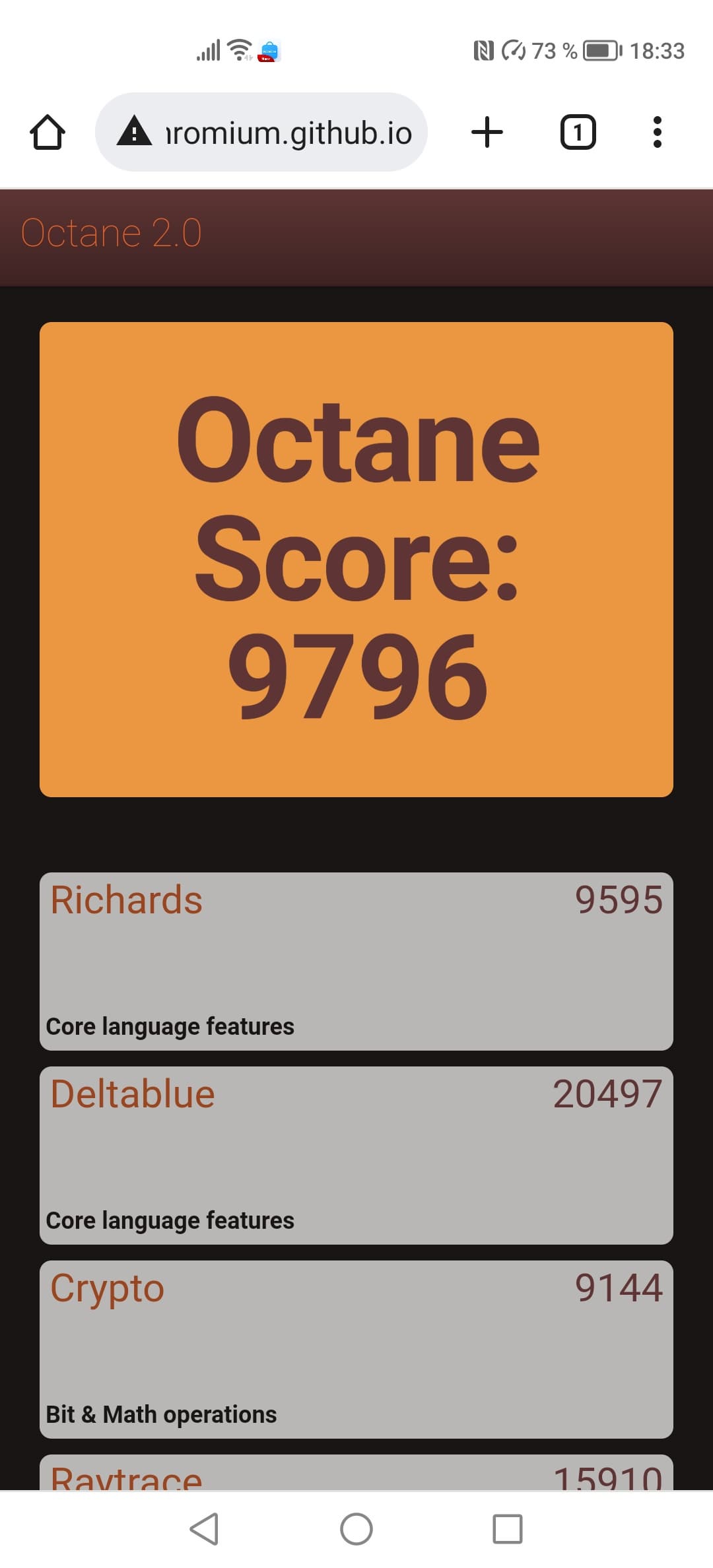 | Google Octane 2 (больше — лучше) | 9796 | 16378 | 19928 | 18041 | 16670 |