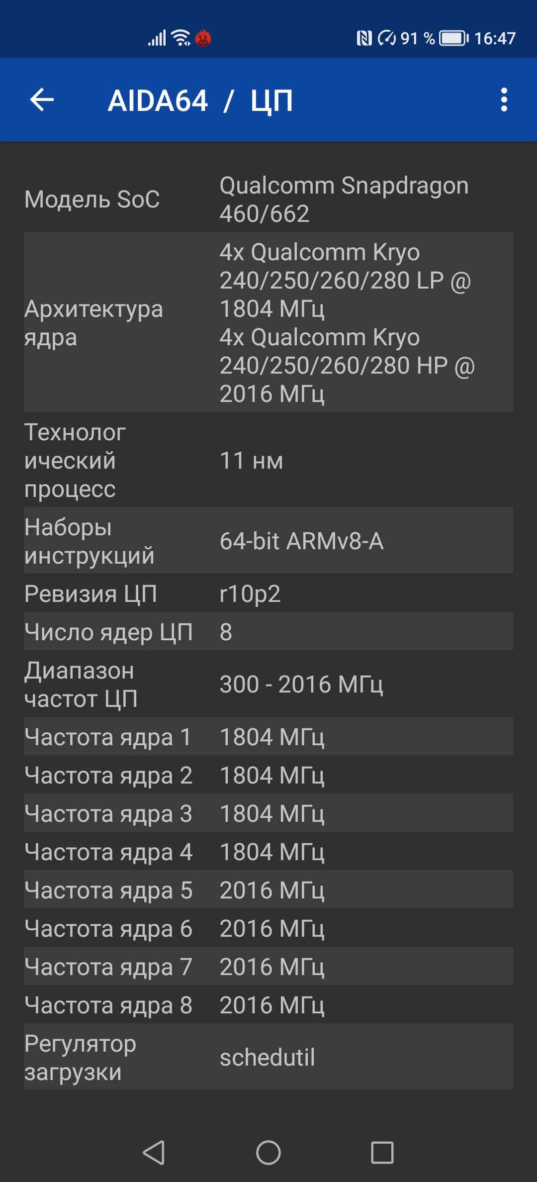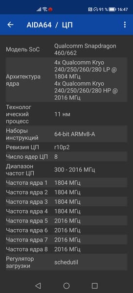 - SoC Qualcomm Snapdragon 662, 8 процессорных ядер (4×Cortex-A73 @2,0 ГГц + 4×Cortex-A53 @1,8 ГГц)