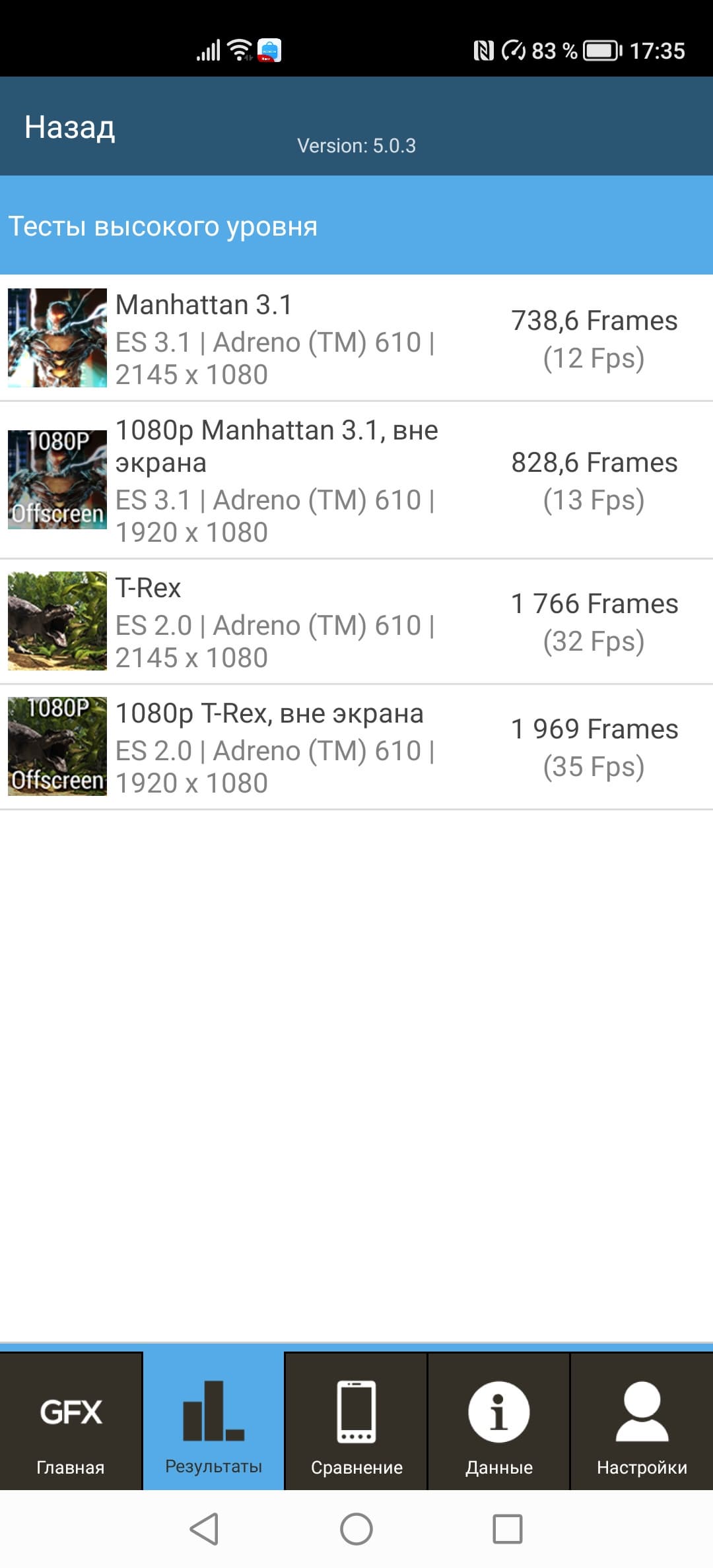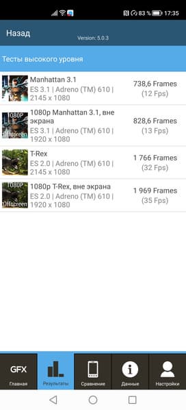 | GFXBenchmark T-Rex (1080p Offscreen, fps) | 35 | 61 | 92 | 66 | 87 |