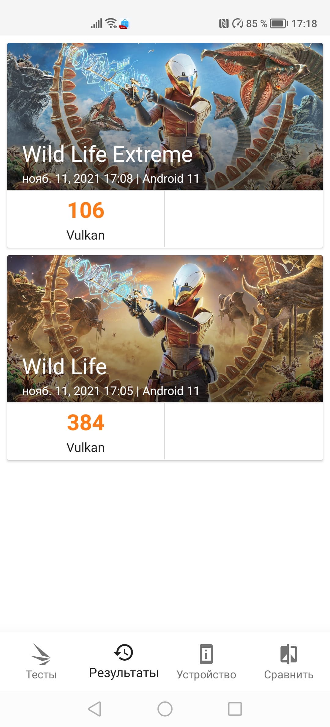 | 3DMark Wild Life Vulkan (больше — лучше) | 384 | 1088 | 1118 | 1508 | 1054 |