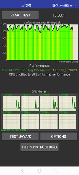 Тестирование традиционно проводилось на обычном уровне энергопотребления без использования функций энергосбережения, хотя таковые в аппарате имеются. Условия тестирования: выставлен минимальный комфортный уровень яркости (примерно 100 кд/м²). Тесты: беспрерывное чтение в программе Moon+ Reader (со стандартной, светлой темой); беспрерывный просмотр видео в HD-качестве (720р) через домашнюю сеть Wi-Fi; игра Injustice 2 с автонастройками графики.