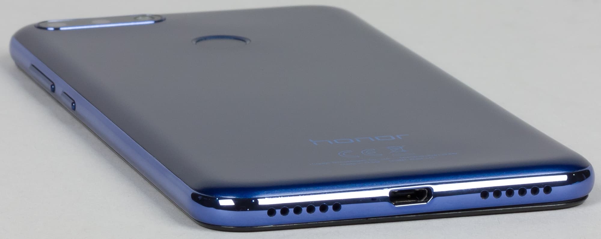 Honor 7C получил пластиковый корпус со стандартным обтекаемым дизайном, как у большинства безликих недорогих смартфонов, без собственной изюминки. Передняя панель прикрыта 2.5D-стеклом с покатыми краями.