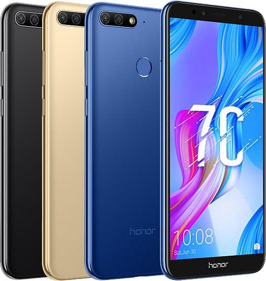 Honor 7C доступен в трех различных цветах корпуса: черном, золотистом, а также синем. Защиты от воды и пыли смартфон не получил.