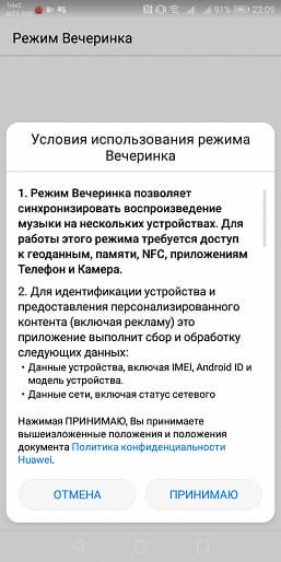 С последним обновлением в смартфоне неожиданно появилось новое приложение под названием «Вечеринка» — для синхронизации воспроизведения музыки сразу на нескольких телефонах, подключенных к одной сети Wi-Fi.