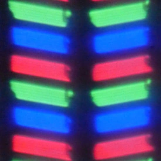 В данном смартфоне используется матрица типа IPS. Микрофотографии демонстрируют типичную для IPS структуру субпикселей: