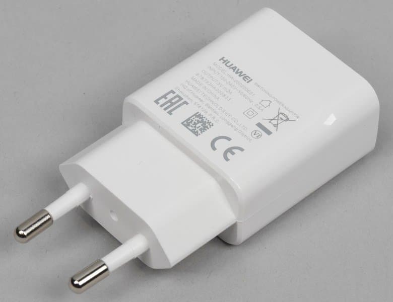 В комплект нашего тестового аппарата входили стандартное зарядное устройство без поддержки быстрой зарядки (5 В 2 А), USB-кабель и инструмент для извлечения карт.