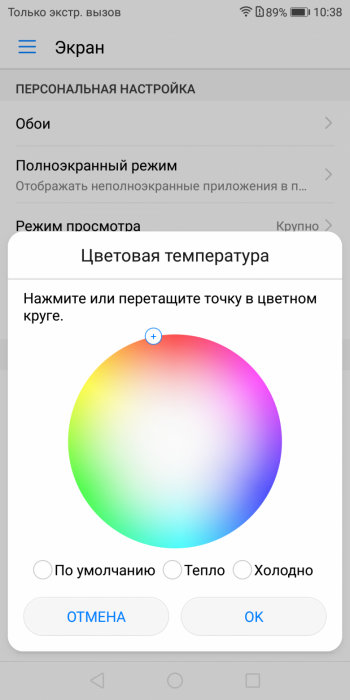 В этом устройстве есть возможность скорректировать цветовой баланс с помощью регулировки оттенка на цветовом круге.