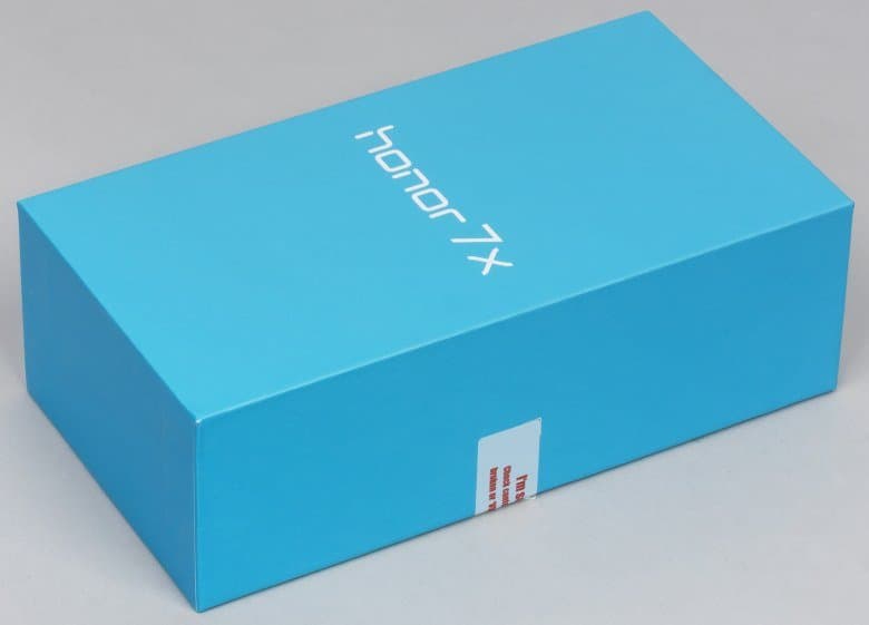Honor 7X поставляется в продажу в лаконично оформленной коробке из твердого матового картона голубого цвета с белым логотипом.