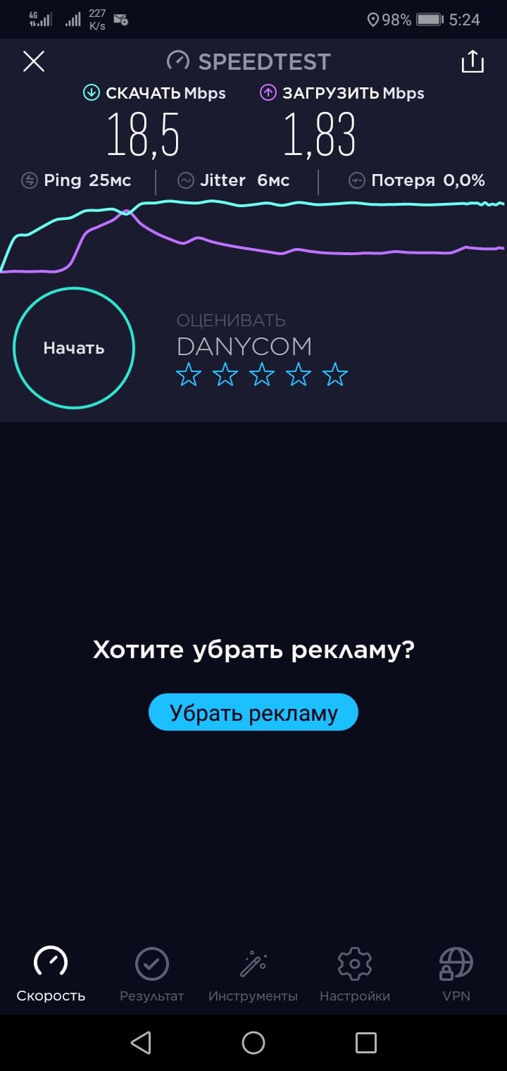 В чипсет Snapdragon 632, на котором работает смартфон, входит модем X9 LTE, который теоретически обеспечивает загрузку данных на скорости до 300 Мбит/с. Однако в спецификациях Honor 8C указываются более низкие параметры: LTE Cat.4 150/50 Мбит/с. В большинстве случаев это не вызывает проблем: даже такую максимальную скорость получить практически невозможно. Поддерживаются все наиболее распространенные на территории России диапазоны частот. В пределах городской черты московского региона аппарат ведет себя уверенно, держит сеть 4G, быстро восстанавливает связь после вынужденного обрыва.