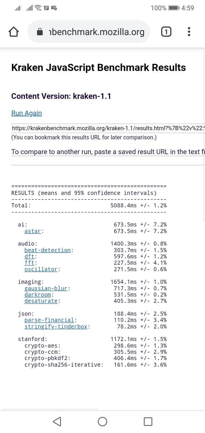 | Mozilla Kraken (мс, меньше — лучше) | 5088 | 5188 | 4062 | 5220 | 5267 |