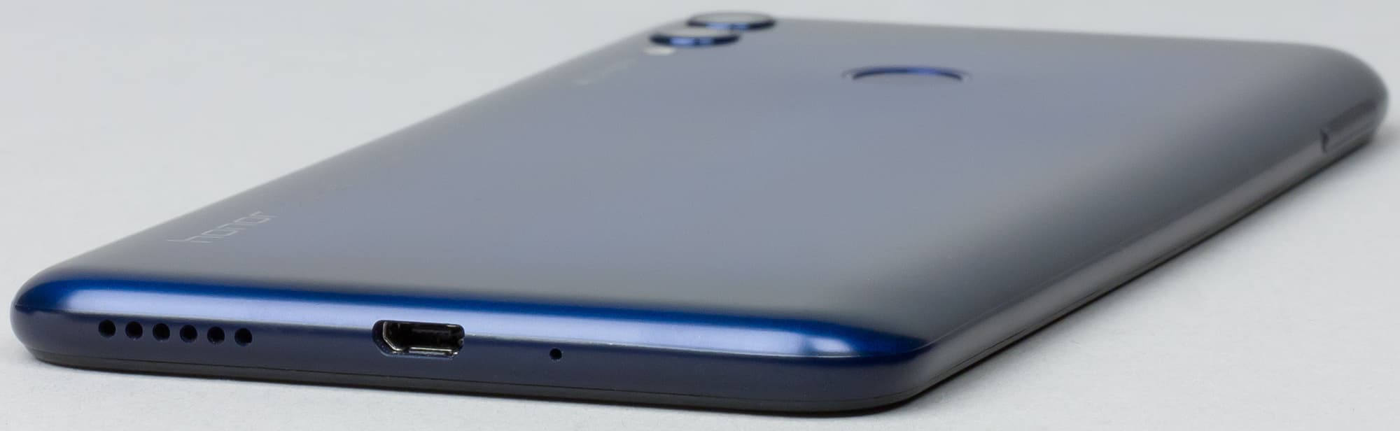 В нижнем торце порт USB представлен устаревшим и несимметричным Micro-USB. Сюда же выведены громкоговоритель и разговорный микрофон.