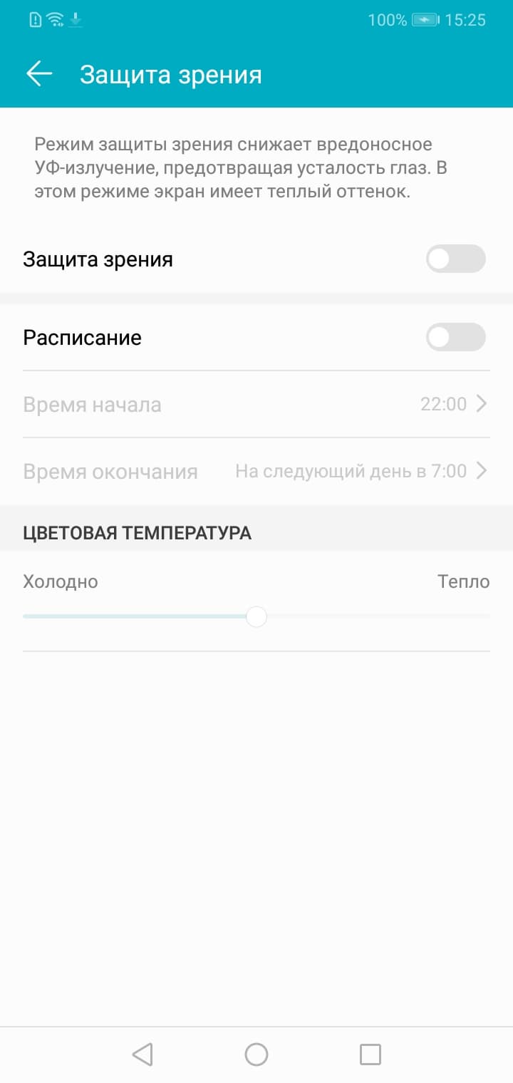 Присутствует модная настройка, позволяющая снизить интенсивность синей компоненты.