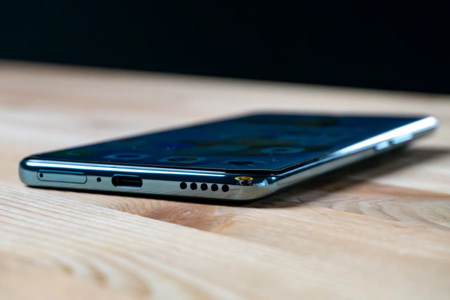 Снизу на торце разъем для двух карт Nano-SIM (без поддержки карт памяти microSD) и разъем USB Type-C. Выхода для 3,5-миллиметрового миниджека проводных наушников нет. Полноценной защиты от влаги и пыли тоже нет.