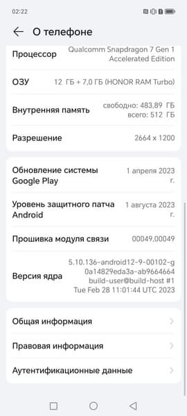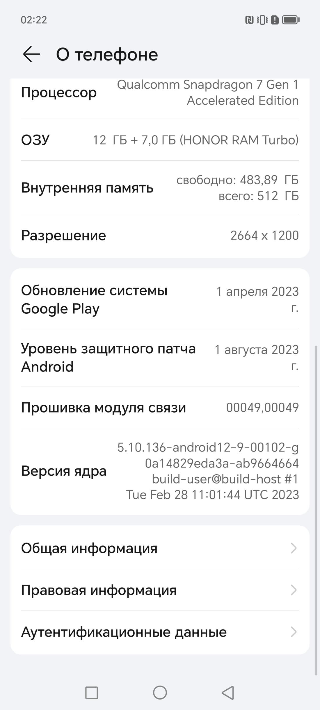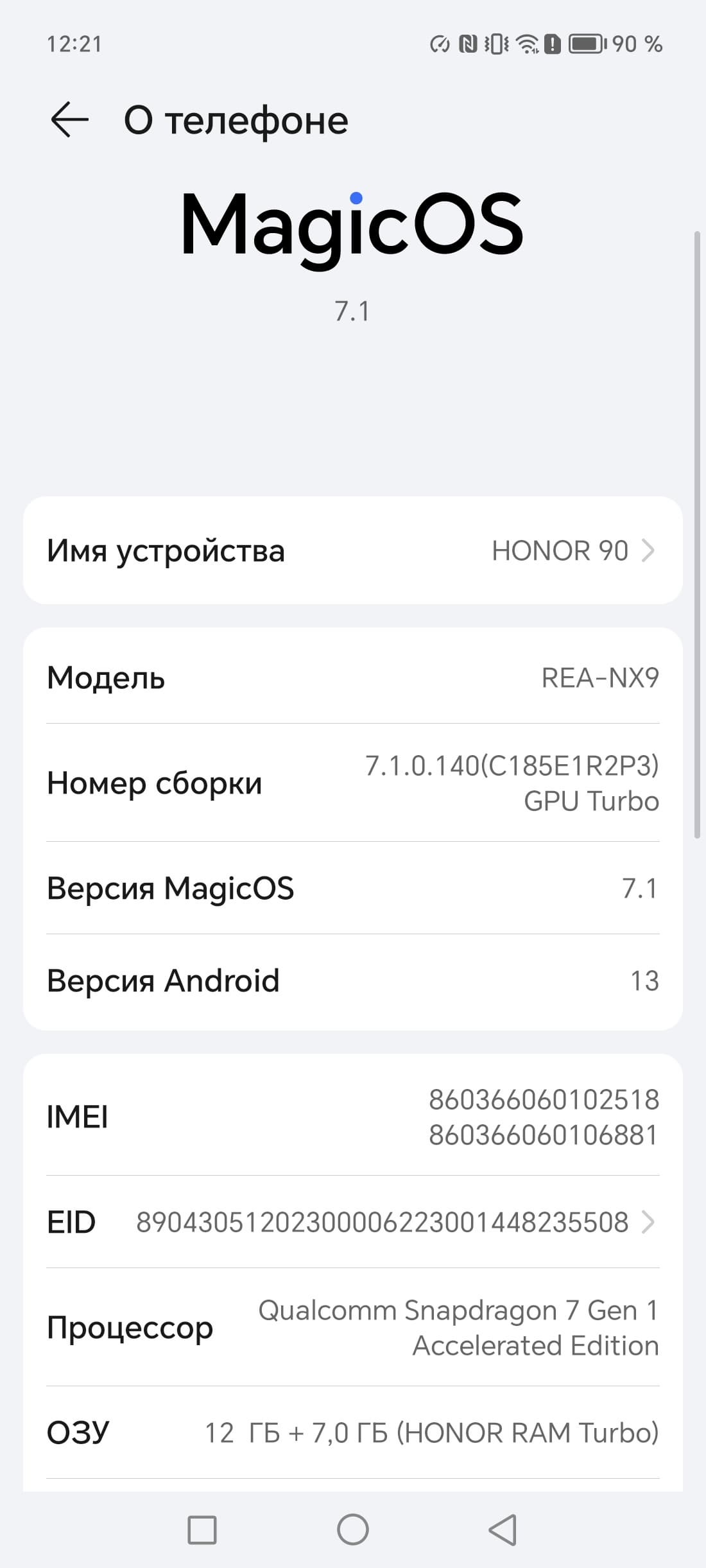 Работает Honor 90 под управлением Android 13 с собственной оболочкой MagicOS 7.1 на восьмиядерной SoC Qualcomm Snapdragon 7 Gen1 Accelerated Edition. То есть это максимально разогнанный чип 700-й серии. У него восемь процессорных ядер (1×Cortex-A710 @2,5 ГГц + 3×Cortex-A710 @2,36 ГГц + 4×Cortex-A510 @1,8 ГГц) и GPU Adreno 644. Объем оперативной памяти составляет 12 ГБ, объем встроенного хранилища — 512 ГБ.