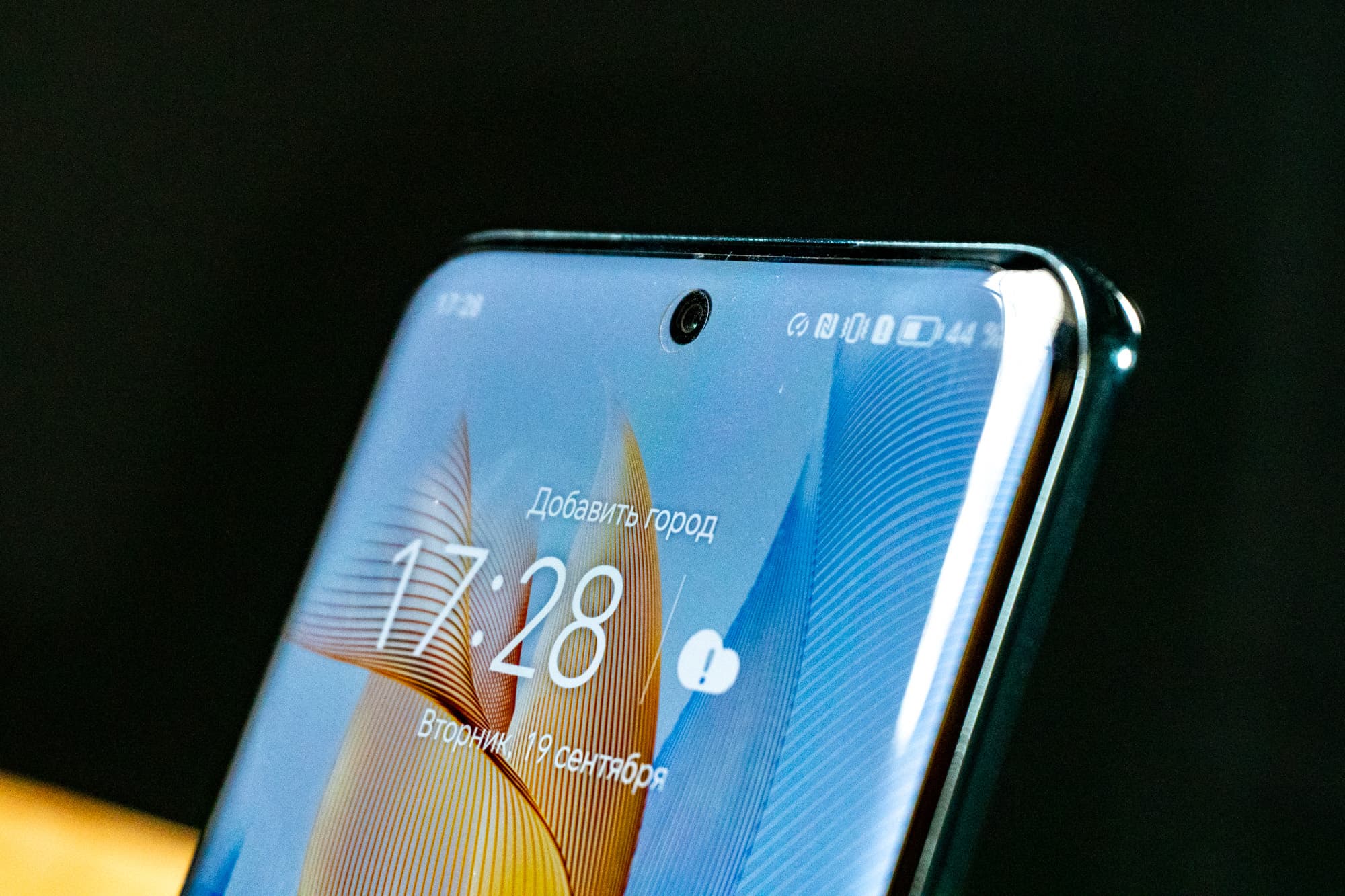 Honor 90 получил корпус с обтекаемыми формами где не найти острых углов и плоских поверхностей. Переднее стекло теперь загнуто со всех четырех сторон, боковая рамка сужена до минимума, и на тыльной стороне бока также идут на скос по всем сторонам. Лежит в руке смартфон комфортно, но удерживается плохо: максимально округлый и скользкий, он, безусловно, нуждается в защитном чехле.