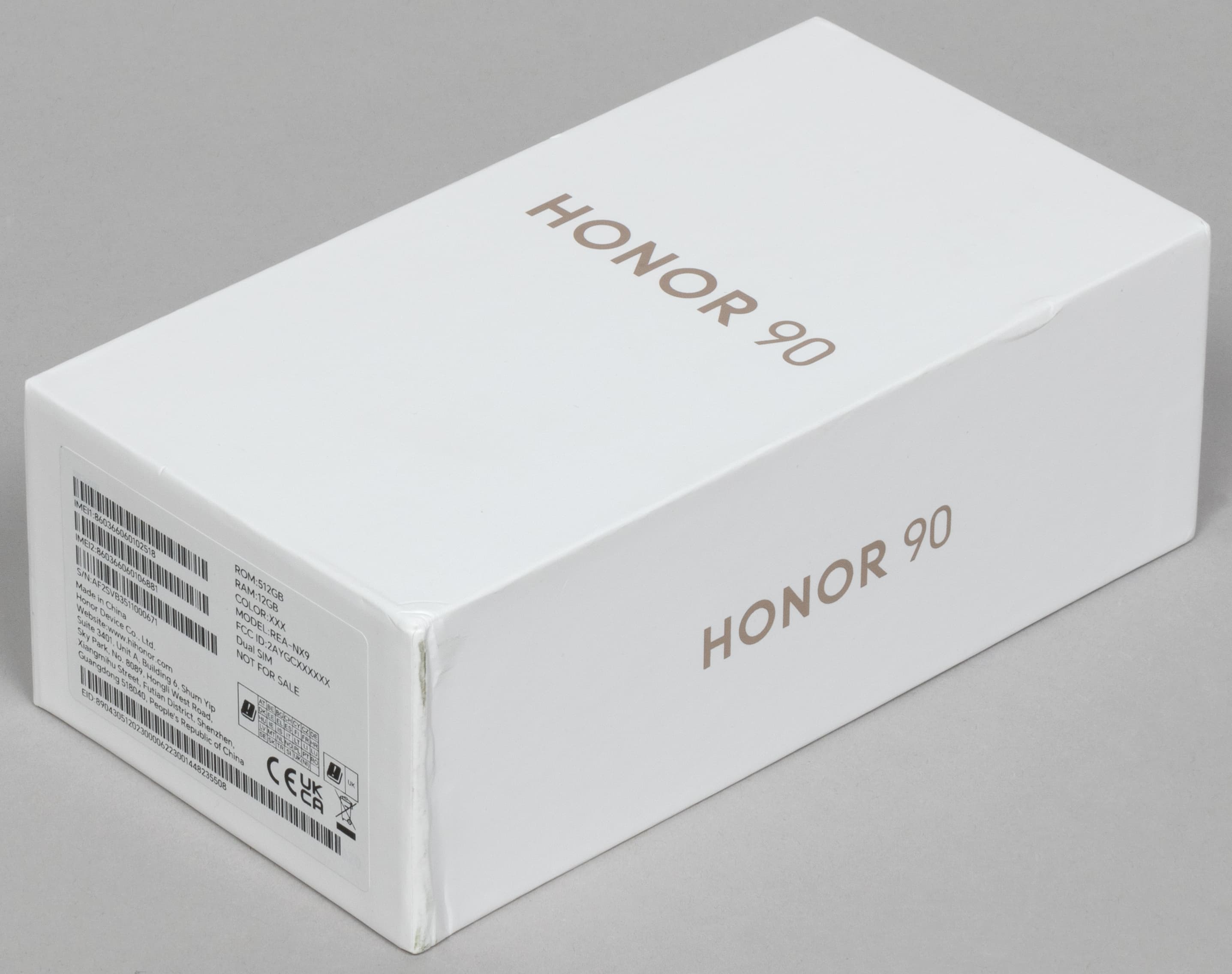 Смартфон Honor 90 поставляется в твердой упаковке с привычным минималистичным лаконичным оформлением.