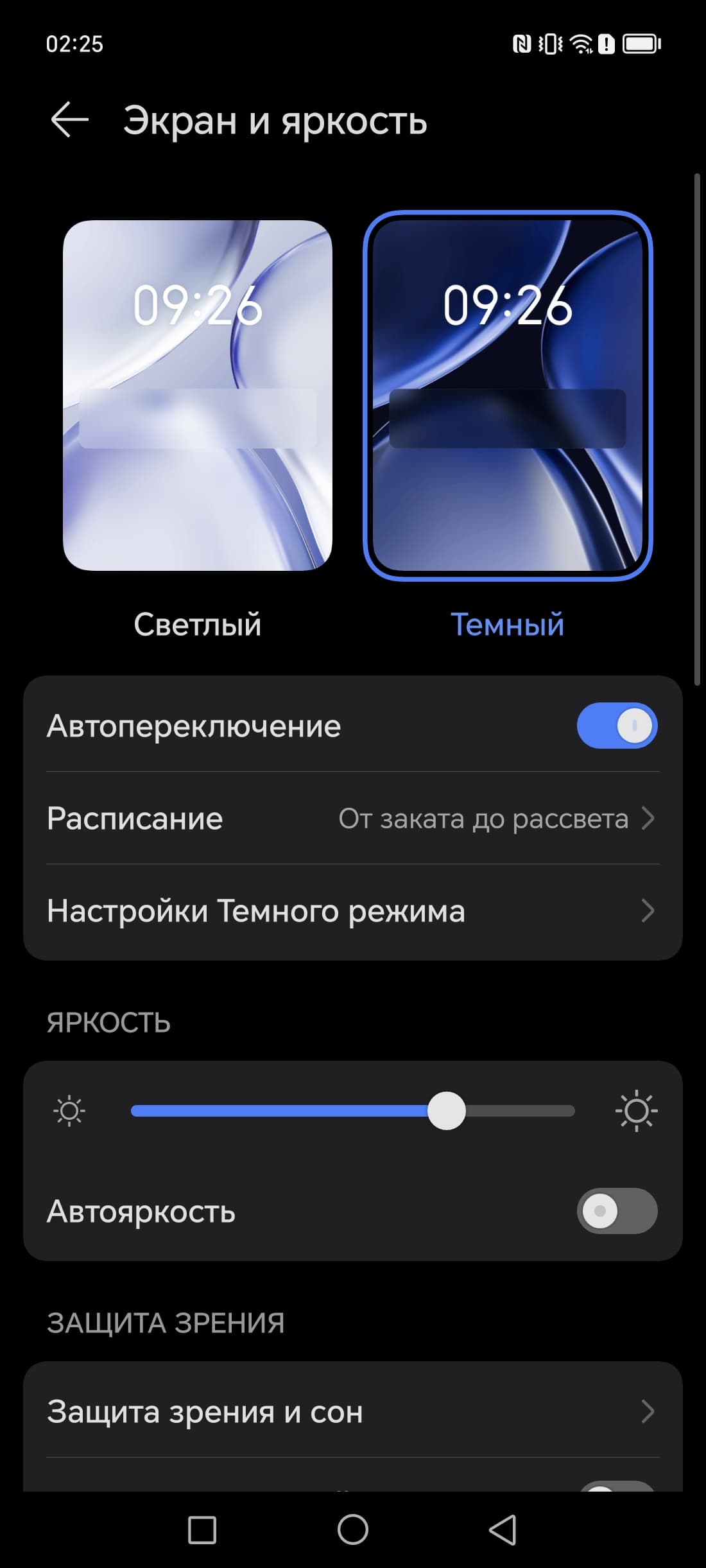 В описании режима Защита зрения приведена дезинформация про усталость глаз. В принципе, яркий свет может приводить к нарушению суточного (циркадного) ритма (см. статью про iPad Pro с дисплеем 9,7 дюйма), но все решается снижением яркости до низкого, но еще комфортного уровня, а искажать цветовой баланс, уменьшая вклад синего, нет абсолютно никакого смысла.