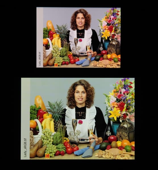 Отметим, что на экранах с расширенным цветовым охватом (без соответствующей коррекции) цвета́ обычных изображений, оптимизированных для устройств sRGB, выглядят неестественно насыщенными. Отсюда и рекомендация: в большинстве случаев смотреть кино, фотографии и все естественное лучше при выборе профиля Обычные.