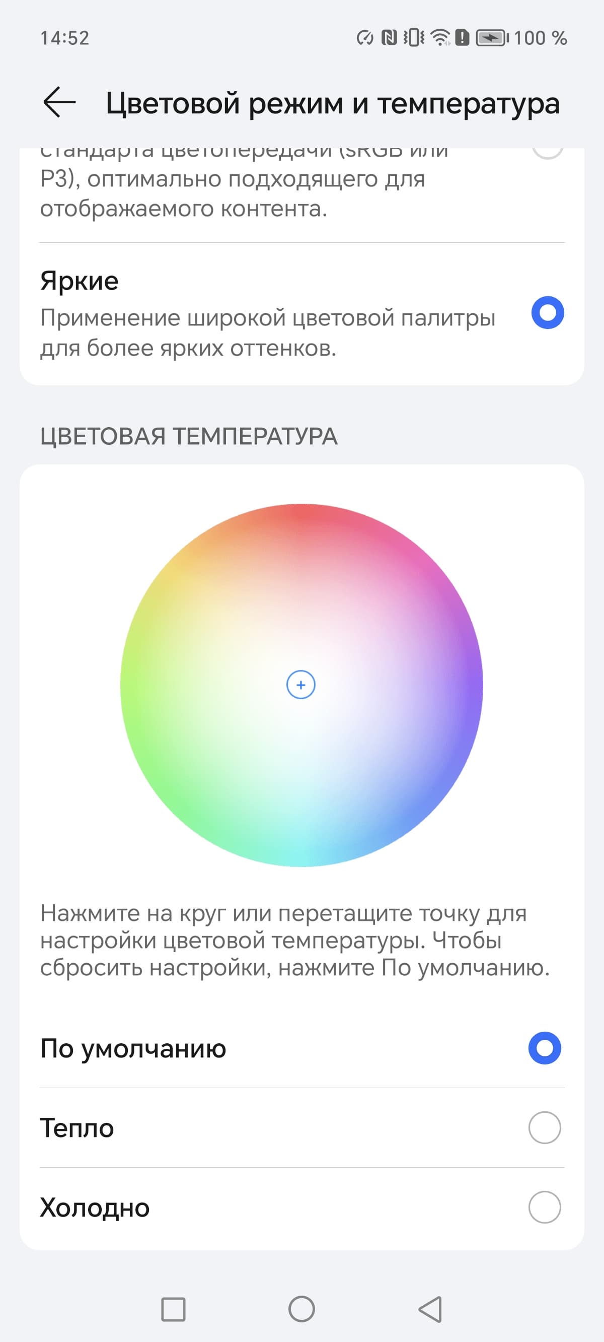 Фотография выше получена при активном профиле Обычные [цвета] в настройках экрана, всего их два: