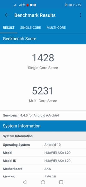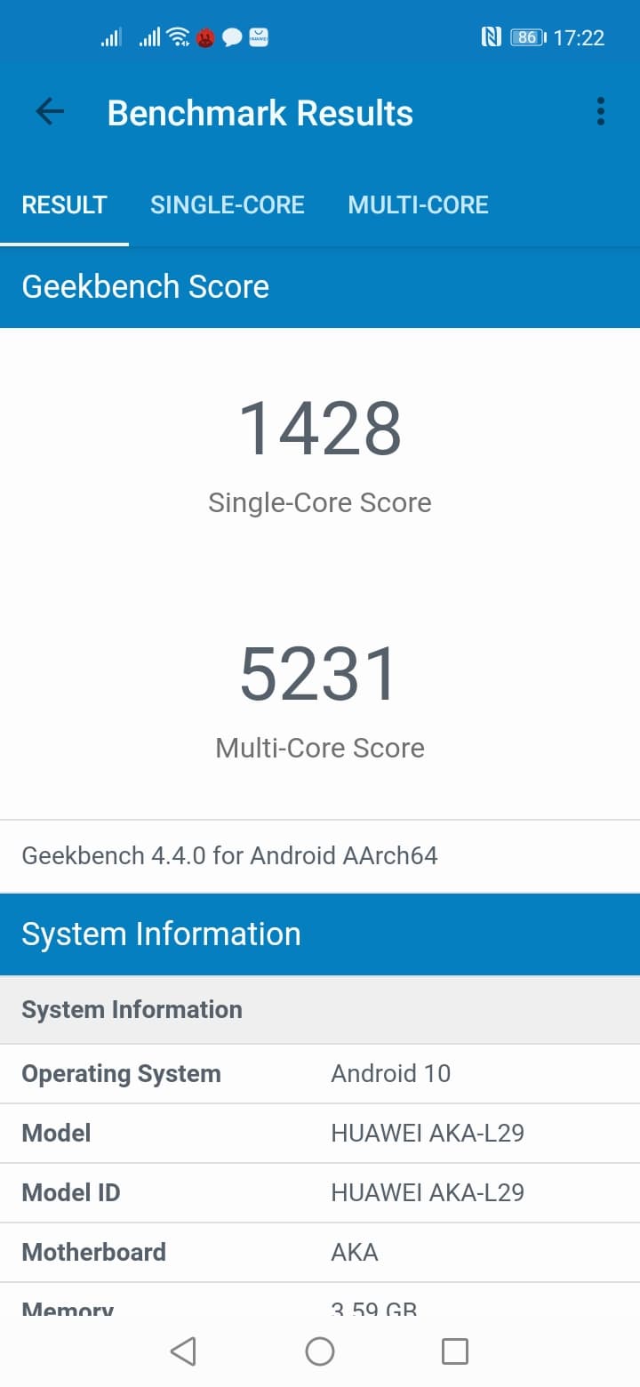 Kirin 710А — это среднеуровневая SoC, выполненная по техпроцессу 12 нм. Смартфон на таком процессоре не показывает высоких результатов в бенчмарках, но вполне комфортно чувствует себя в реальной эксплуатации. К отзывчивости интерфейса и скорости работы приложений претензий нет, а для немногочисленных игр, в которые тут можно поиграть, мощи пока хватает.