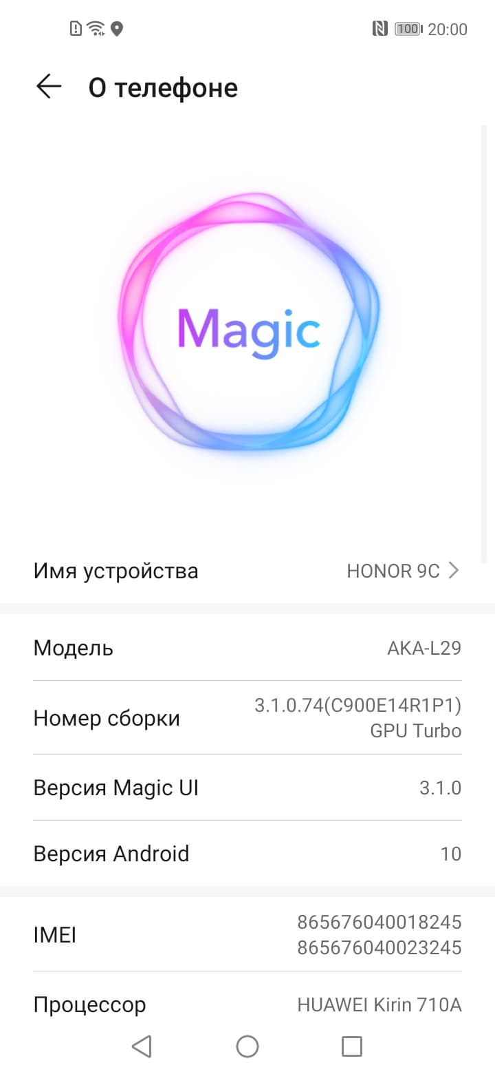 Honor 9C использует в качестве программной платформы ОС Google Android 10-й версии с фирменной оболочкой Magic UI 3.1, так что здесь, на радость пользователям, установлены все самые последние модификации фирменного ПО. Сам интерфейс хорошо знаком фанатам марки, и он во всем совпадает с EMUI, никаких явных различий между ними нет. Имеется темная тема.