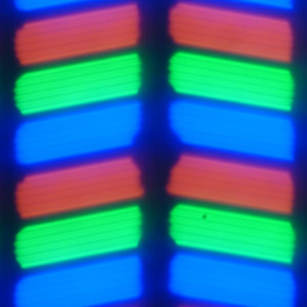 В данном смартфоне используется матрица типа IPS. Микрофотографии демонстрируют типичную для IPS структуру субпикселей: