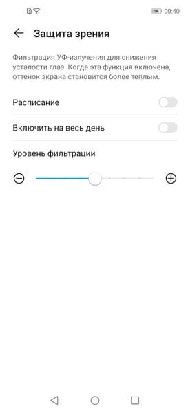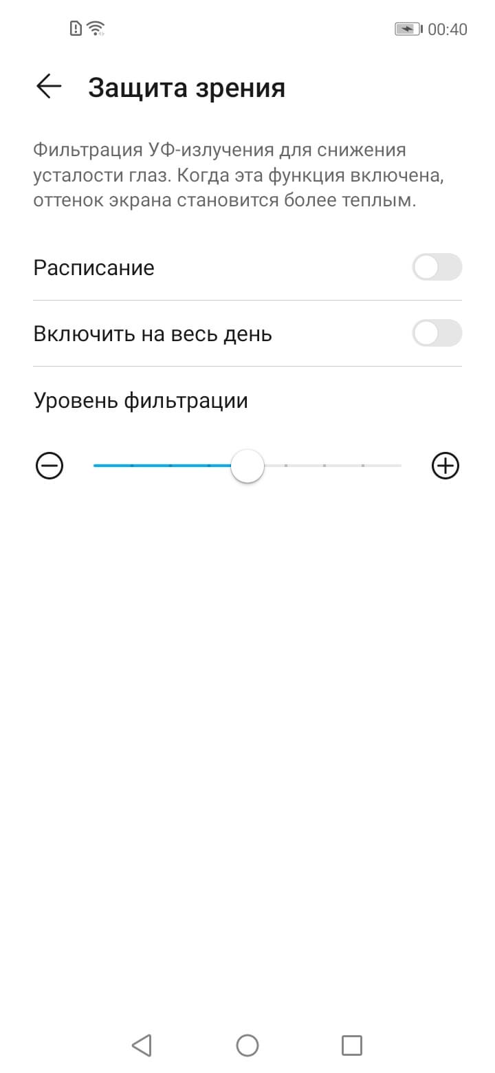 Присутствует модная настройка, позволяющая снизить интенсивность синей компоненты.