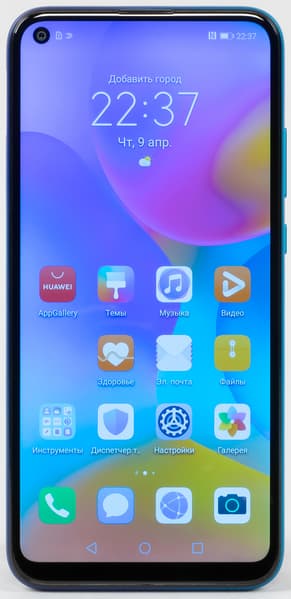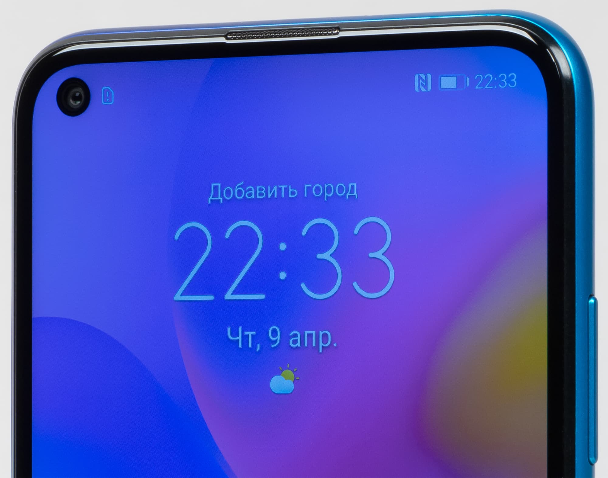 Honor 9C выглядит ровно на свои деньги: не «дорого-премиально», а броско и молодежно. Пластиковая задняя стенка и пластмассовая боковая рамка сверкают на солнце градиентным переливом. В то же время, дизайн современный: большой экран с сильно закругленными углами, относительно тонкая рамка вокруг него, маленький круглый вырез под фронтальную камеру прямо в матрице дисплея. Единственное, что выдает бюджетный вариант, это тыльное расположение сканера отпечатков пальцев, хотя тыльный сканер, как правило, быстрее и удобнее, чем новомодный подэкранный.